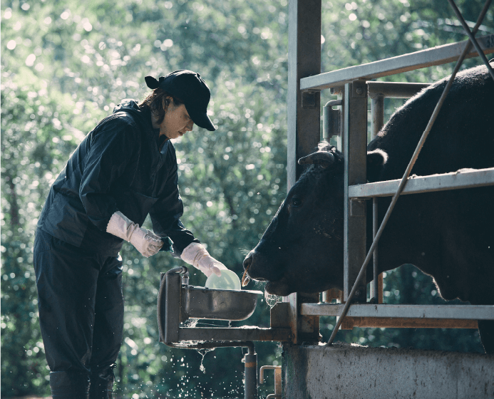 丁寧に積み重ねて「石原牛」に。子牛を導入してから「石原牛」として出荷するまでの期間は約600日です。毎日繰り返していく基本的な作業は同じでも、生きものの体調は日々変わっていき、季節や天候の変化もあります。そうした様々な変化に対応しながら、1日1日の世話を丁寧に積み重ねて「石原牛」となります。出荷されるまでに、スタッフがかけてきた時間の長さ。わたしたちが日々こだわっている想いを、少しでも感じていただけたら生産者として冥利に尽きます。