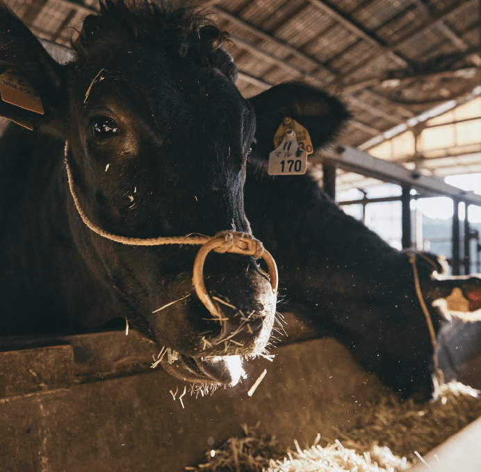 機械には決して真似できません。牛さんはかゆいところがあると、柵などに体をこすりつけて傷をつけてしまいます。わたしたちは定期的なブラッシングをすることで、牛さんとコミュニケーションをとっています。すると、かゆいときには目で訴えかけてくるようになります。ブラッシングをはじめると、牛さんは気持ちよさそうな表情を浮かべます。毛並みもキレイになり、艶も出る。リラックスしてよく食べ、よく眠るようになります。それが、手をかけて「牛造り」をするということです。