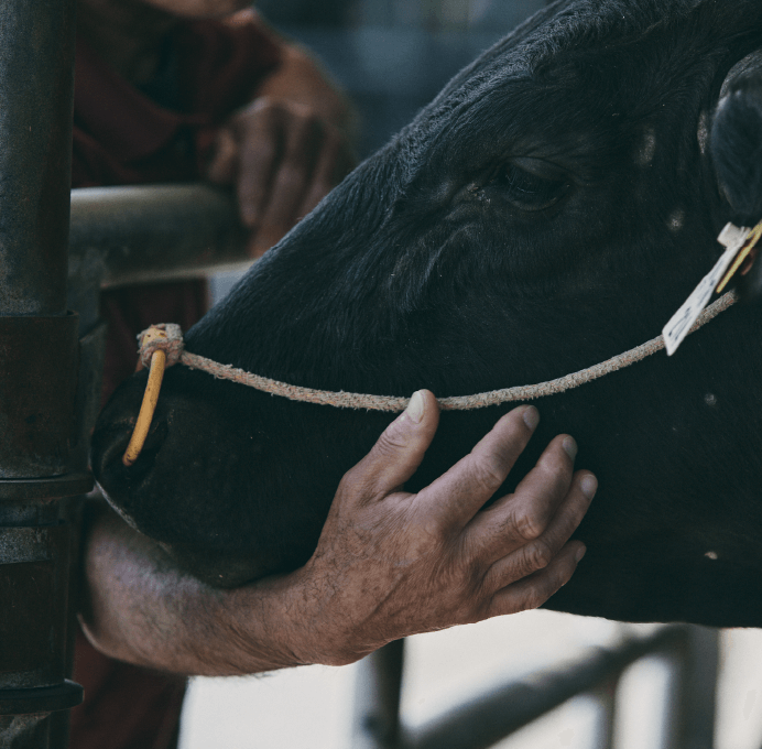 生きものと向き合う責任。わたしたちは、牛さんの命を預かって仕事をいただき、命をもらって生活させていただいています。その感謝の気持ちをいつも胸に、牛さんと接しています。事故があれば、命を無駄にすることになります。そうならないために、防げる事故は防ぐよう、病気の早期発見をスタッフは常に意識しています。また異変が起きていないか交替で夜の見回りを行っています。牛を見る目を養うこと。敏感に察知すること。それは、生きものと向き合うわたしたちの責任です。