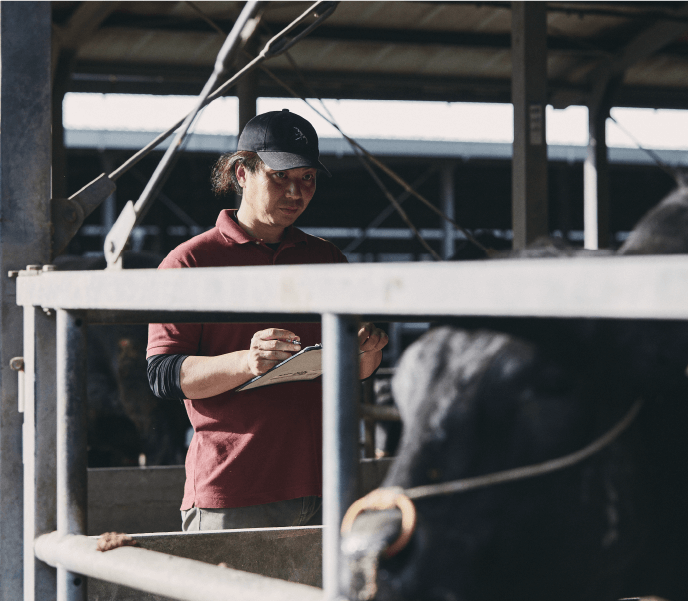 畜産業の面白さは結果が如実に出るところ。こだわりたいのは牛肉の最高ランクの格付けを獲得し続けていくことです。牛さんがリラックスできる環境をつくることが、結果につながると信じて、日々研鑽を重ねています。長島農場は1000頭の農場なので、チームみんなで情報を共有し、同じ意識を持って仕事に取り組んでいくことが大切です。牛さんの状態を見極めて適切な餌やりをすること。寝床の清潔さを保つこと。天候や気温の変化に素早く対応すること。慣れてくれば要領はよくなりますが、生きもの相手の仕事は一日として同じことがありません。だからいつも新鮮な目を保つこと、変化を敏感に感じ取ることが大事だと思っています。石原牛は格付けで高いランクを安定して獲得していますが、それが決して当たり前ではないこと。難しいことは現場にいる自分たちが一番わかっています。だからこそ結果にこだわり続けます。