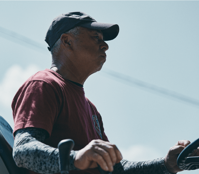 マル善は牛さんの排泄物から良質な堆肥を生産しています。堆肥センターに原料を運び、酵素を混ぜて消臭をしながら、約半年かけて堆肥を熟成させ管理します。そして畑の植え付け期に、長島の200以上ある契約畑にトラックで堆肥を運び、マニアスプレッダーという機械で散布をするのが私の仕事です。長島はジャガイモの栽培が盛ん。畑に堆肥を入れると土壌が良くなり、土がフカフカになってジャガイモの収穫量があがります。畑に行くには狭い道や斜めの崖道もあり、運転していて怖いこともある。でも、収穫が終わると「今年もいい収穫だったよ。おたくの堆肥を入れてよかった!」という声を農家さんからもらえる。それが一番の楽しみ。地元の農業に貢献できていることが嬉しいですね。それにマル善はみんな人柄がよく雰囲気がいいから楽しいし、元気になれる。体力が続くかぎり、何歳までも働いていきたいですね。