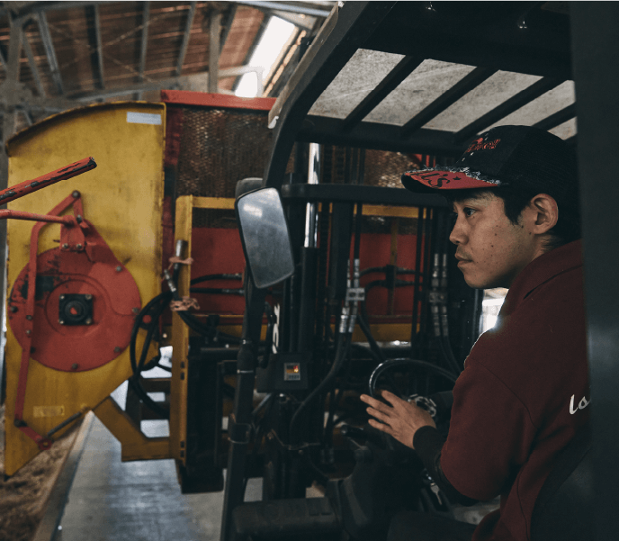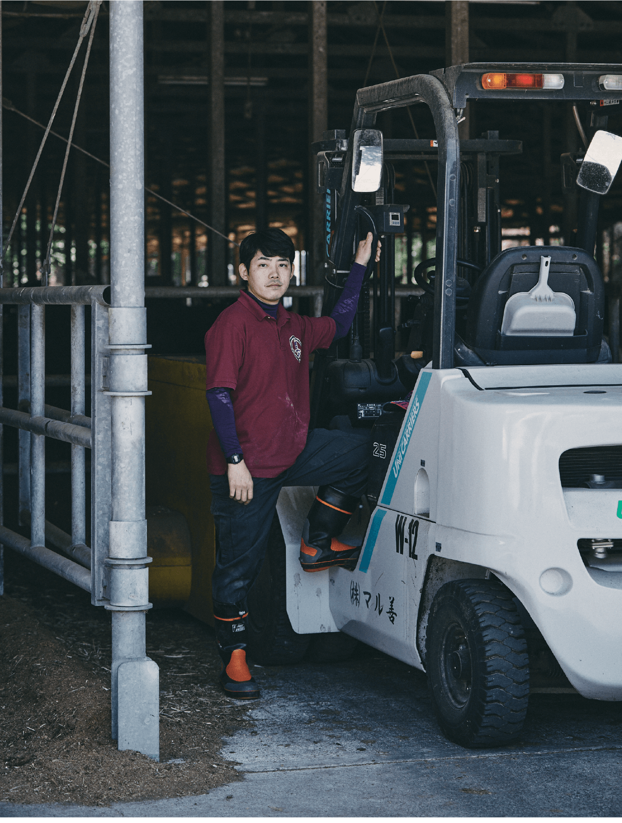 この業界に入って時間はそれほど経ちませんが、関係者と話をしていると石原牛の品質の高さをよく驚かれます。「どうやれば等級5を8割以上にできるのか知りたい!」と。そうした高い評価をされる商品に携われることは誇りにもなるし、自信にもなります。私は牛舎の寝床の管理を重点的に担当しています。床がでこぼこしていたら寝づらいのでトラクターで平らにしたり、ベタベタしていたら交換したり。ストレスのある環境は肉質に影響してくるので、ゆったりできる環境をキープすることを大事にしています。同時に私自身もニコニコ働けるような雰囲気づくりを心がけています。働いている人に余裕がなければ、牛さんもそれを感じ取ると思うんです。仲間と元気に声をかけあったり、しっかり休憩を取ったり、みんながゆとりを持って働いていることも、石原牛が高い品質を維持している理由のひとつだと思います。